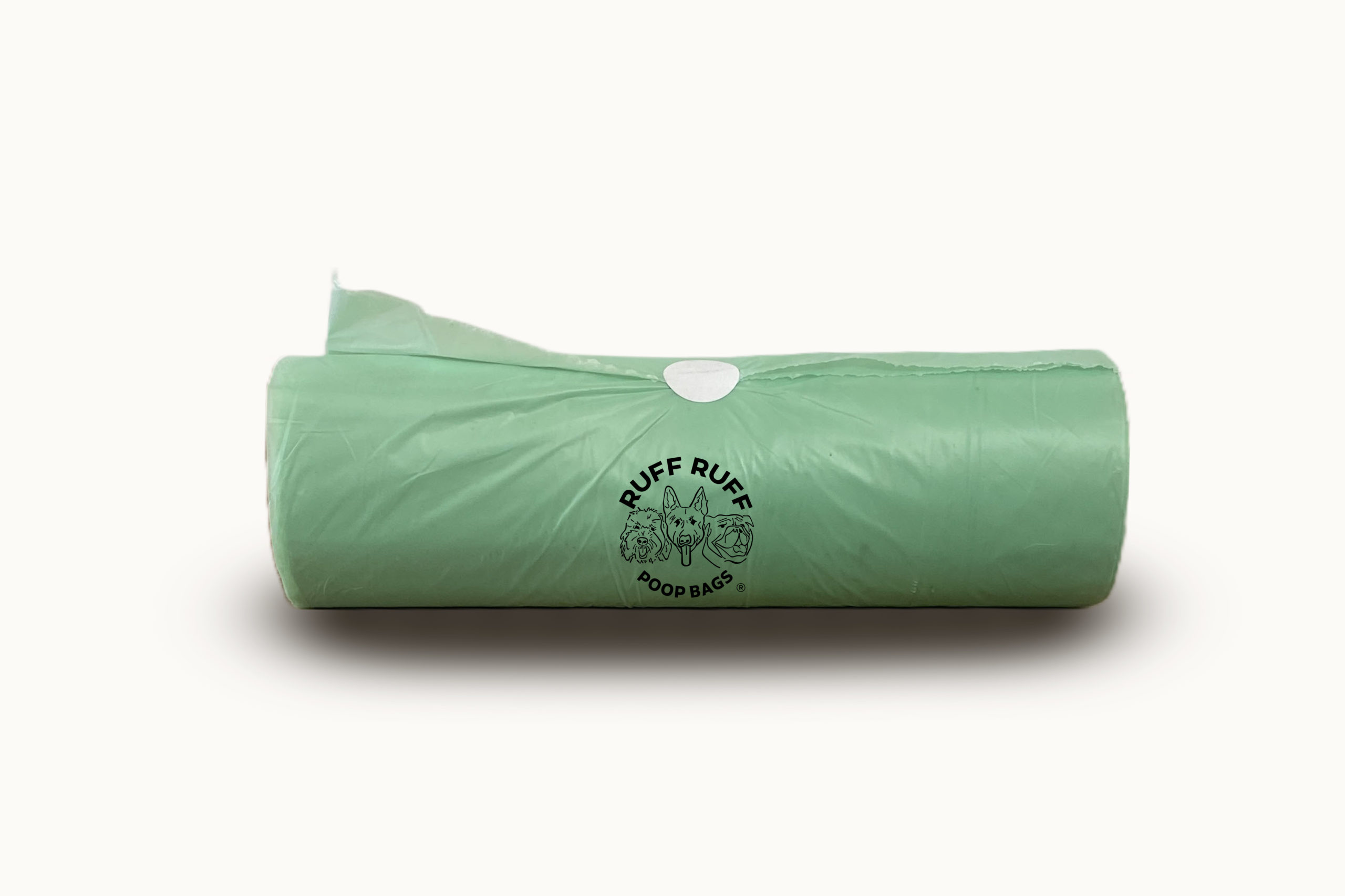 Our most environmentally responsible choice, the Ruff Ruff Eco Roll Bags are 100% compostable bags made from plant-based materials that break down naturally without harming the planet.